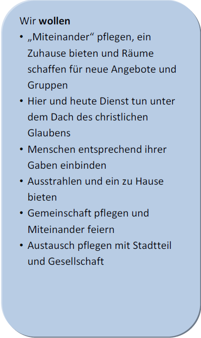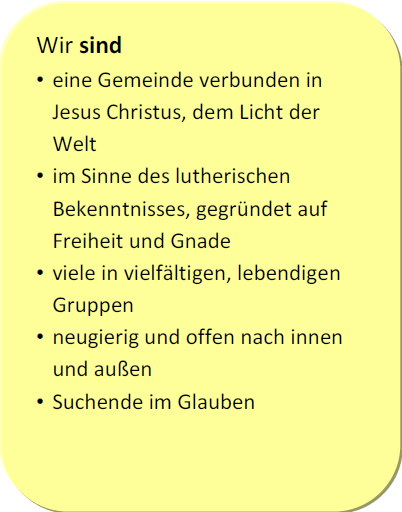 | Leitbild der Johannesgemeinde | ![]() Hier kommen Sie zu den einzelnen Wir-Blöcken - einfach klicken. |